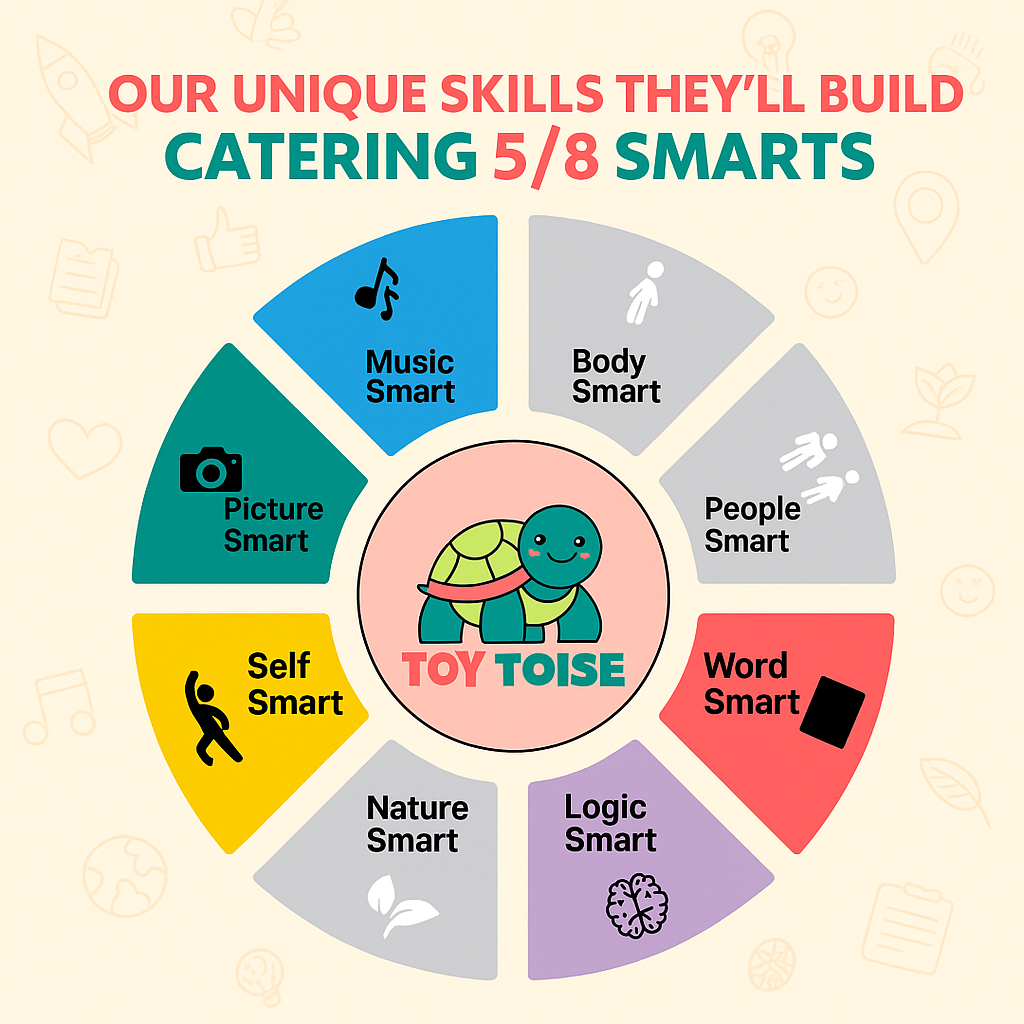 It nurtures 4 Key Smarts in your child: Picture Smart 🎨 for creativity and visual expression, Word Smart 📚 for writing and storytelling skills, Number Smart 🔢 for organization and note-taking, and Self Smart 💪 to build confidence and independence as they manage their ideas.